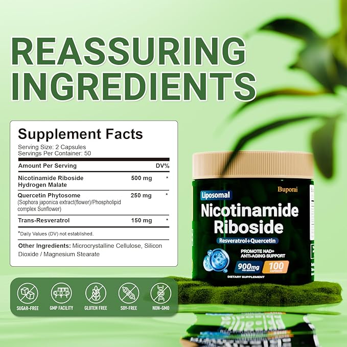 - PROMOTE OVERALL HEALTH-Our liposomal nicotinamide riboside supplement 900mg are designed with a superior 3 IN 1 formula for men and women to boost cellular energy, promote healthy aging, aid in cellular repair, and longevity