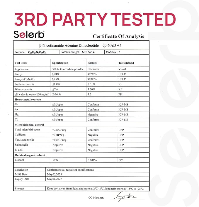 - TRUSTED QUALITY – Selerb’s NAD+ products are crafted with a premium blend of ingredients free from soy, dairy, gluten, and tree nuts, designed for effectiveness and safety. Each batch is 3rd-party tested to ensure purity and potency. Made in the USA with the highest standards, Selerb’s commitment to quality ensures that your health and satisfaction are our top priorities.