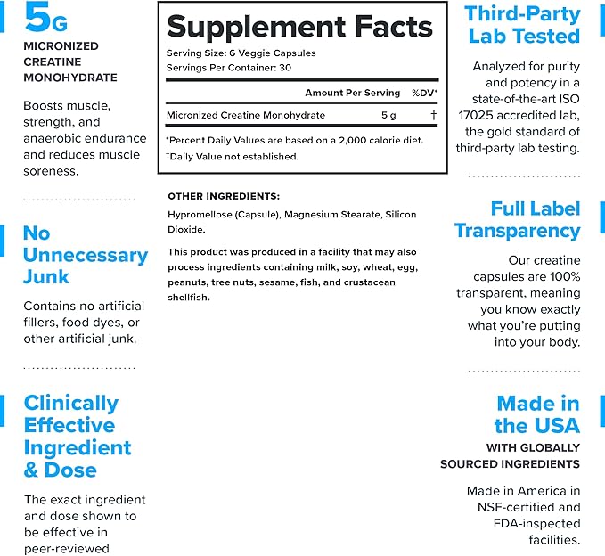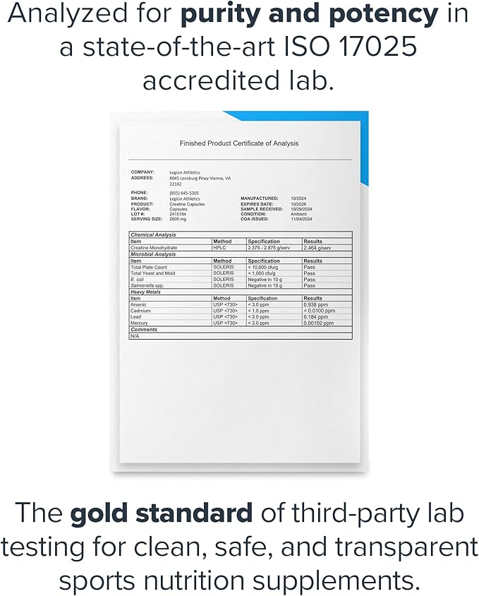- Micronized Creatine Monohydrate Capsules: Achieve your fitness goals & optimize your muscle recovery with unflavored creatine from LEGION; With a clinically effective dose of creatine monohydrate this creatine powder can help boost muscle mass, improve endurance, and reduce soreness after your workout.