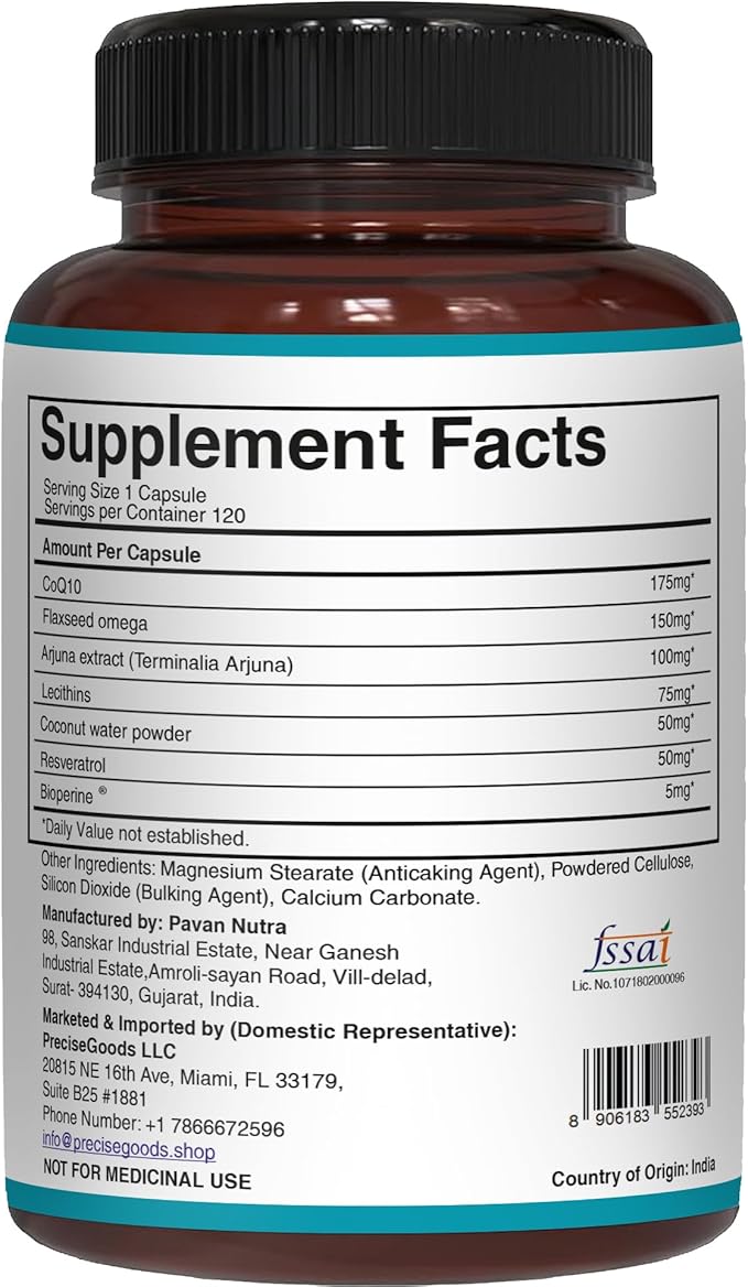 - WELLNESS ROUTINE COMPANION: This unique combination of CoQ10, Bioperine, and Arjuna Extract fits easily into your daily wellness routine and is suitable for those seeking plant-based supplement options.