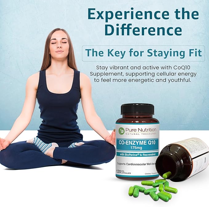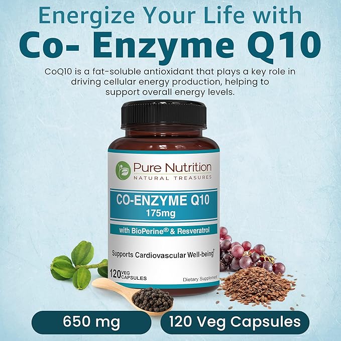 Pure Nutrition Bio Coenzyme Q10-175mg | 120 Veg Caps | CoQ10 with Bioperine® & Arjuna Extract | Nutrient-Rich Botanicals for Daily Wellness | Non-GMO