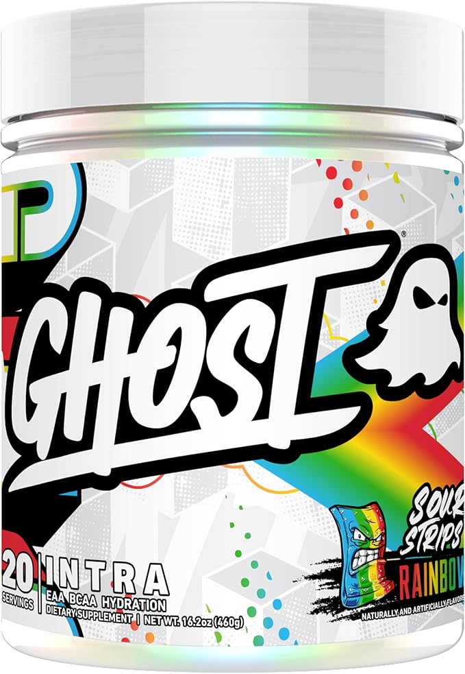 - Classic True to Juice Taste: GHOST Intra combines EAAs, BCAAs, nootropics, and hydration to fuel your body in and out of the gym. Stack it with pretty much anything (like GHOST Size) or use it by itself. Sour Strips Rainbow flavor. 20 servings per container.