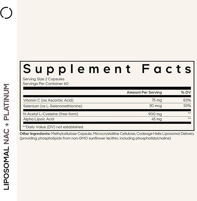 - Premium NAC Formula: Codeage Liposomal NAC+ Platinum supplement features 900 mg of N-Acetyl L-Cysteine (NAC) in its free-form for a refined and pure ingredient profile.