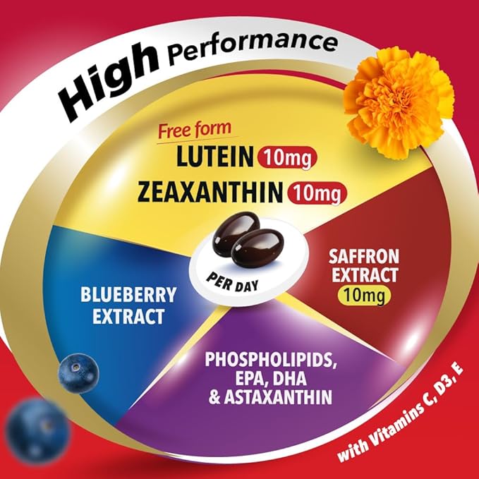 - Beyond AREDS 2 Formula – Powered by zinc-free OptiGuard Vision nutrition: This advanced formula features 10mg of lutein, 10mg of zeaxanthin, along with meso-zeaxanthin and trans-zeaxanthin, enhanced with phospholipids, astaxanthin, EPA, DHA, and Trusaffron Saffron Extract, providing comprehensive support for optimal eye health. Scientifically proven to support macular health and protect against age-related eye concerns for sharper vision.
