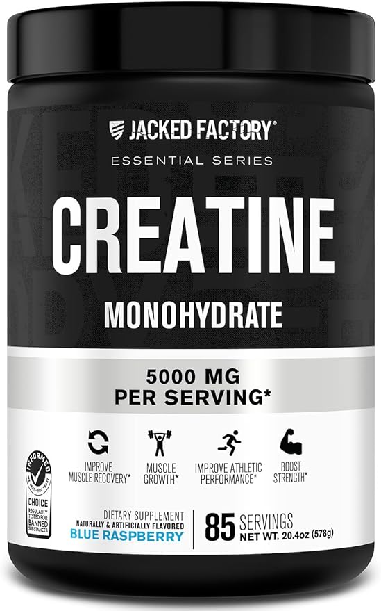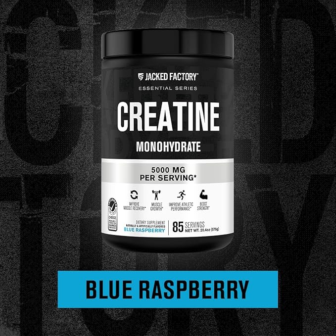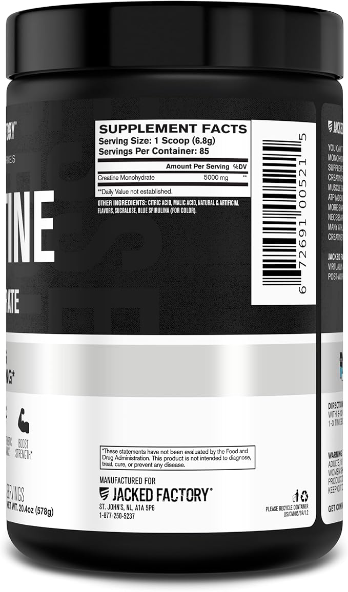 Jacked Factory Flavored Creatine Monohydrate Powder 425g - Creatine Supplement for Muscle Growth, Increased Strength, Enhanced Energy, & Improved Athletic Performance - 85 Servings, Blue Raspberry