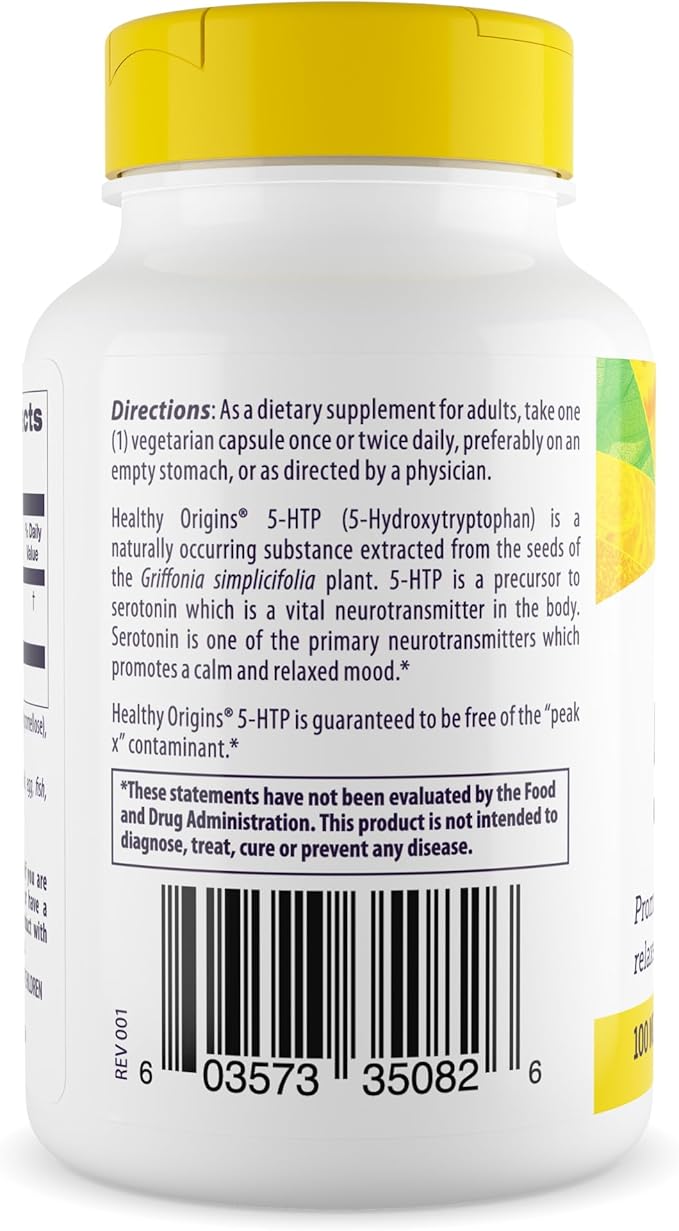 Healthy Origins - 5-HTP 100mg, 120 Veggie Capsules, (5-Hydroxytryptophan), Non-GMO, Gluten-Free, Vegan