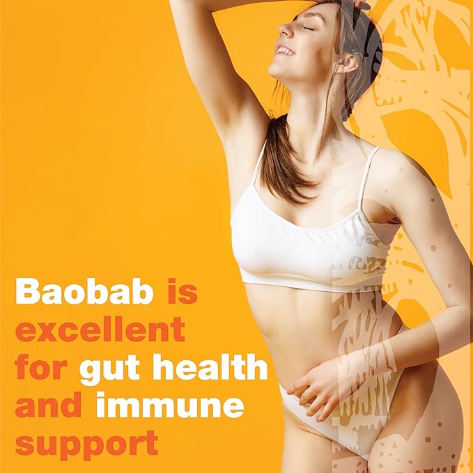 - BENEFITS: Baobab promotes optimal gut health, enhances satiety, and strengthens the immune system with its high vitamin C content. This nutrient-dense superfood is rich in vitamins, minerals, antioxidants, and dietary fiber, offering a wide range of health benefits.