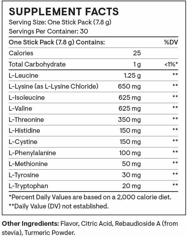 - Recovery: Essential amino acids (EAAs) support muscle repair and recovery*