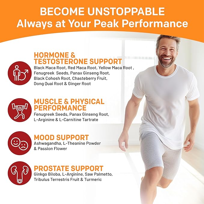 - How It Works - Employing 10:1 Maca root extracts for optimal hormone balance and physical performance, 20:1 Ashwagandha extract for muscle, stress, and energy support, along with Fenugreek Seeds, Panax Ginseng Root, and other botanicals for comprehensive physical and mental well-being. Bioperine is strategically included for maximum nutrient absorption, ensuring the unparalleled effectiveness of the supplement.