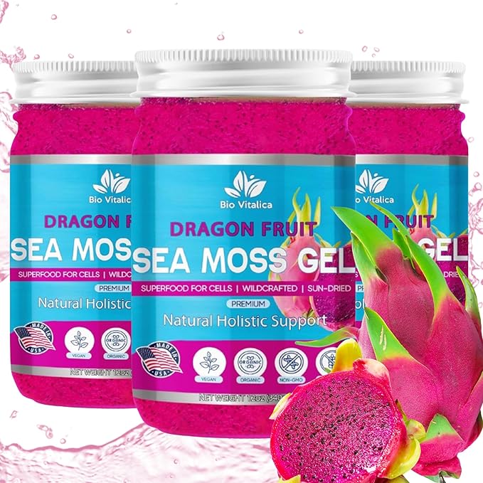 Sea Moss Gel by BioVitalica - Irish sea Moss raw Organic - Premium Quality - Dr Sebi, Vegan superfood for Cells - 100% Natural Seamoss Gel (Pack of 3, Dragon)