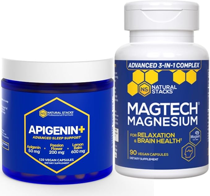 NATURAL STACKS Apigenin for Sleep + Magtech Magnesium Supplement Bundle - Supports Sleep & Brain Health* - 210 Total Capsules