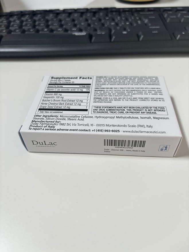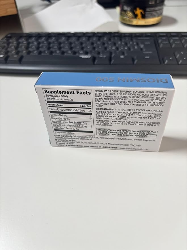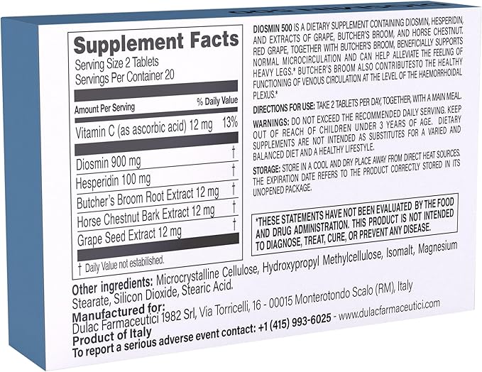 Dulàc - Diosmin 500 with Horse Chestnut, Butcher’s Broom, Red Grape & Hesperidin - Dietary Supplement - 40 Tablets - Made in Italy