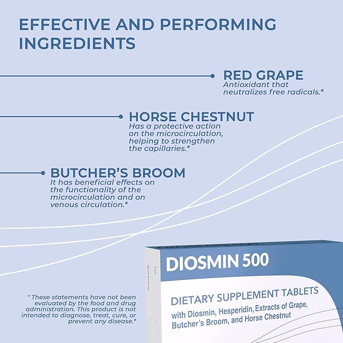 - Dietary supplement with Diosmin, Hesperidin, Horse Chestnut, Red Grape & Butcher’s Broom
