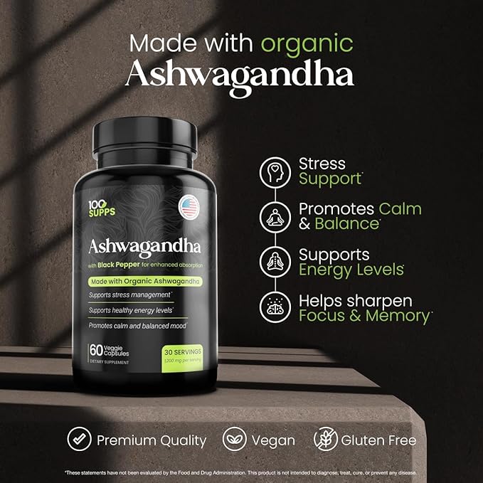 - Made with Organic Ashwagandha: Each serving provides 1,200 mg of Ashwagandha, paired with black pepper to support better absorption and maximize effectiveness.