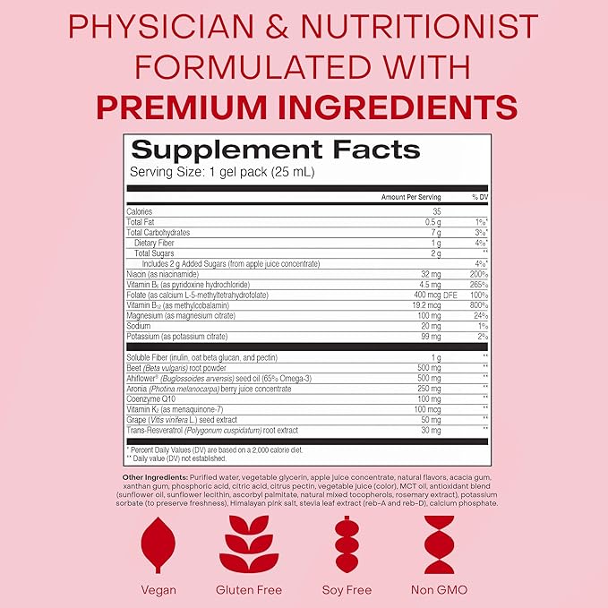 - All-in-One Formula Replaces 13 Pills: The future of vitamins is pill free. This physician and nutritionist formulated gel pack helps promote heart and vascular health with over 2,686 mg of CoQ10, resveratrol, Vitamin K2, soluble fiber and other essential nutrients to help maintain normal cholesterol and blood pressure.
