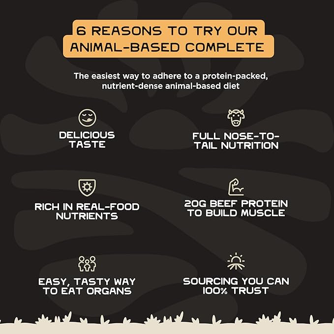 - Nutrient-Dense Formula: Combines grass-fed beef protein with regeneratively raised grass-fed organ meats for comprehensive, animal-based nutrition, rich in vitamin A, B12, iron and CoQ10. Our beef protein uses the full carcass, which means you get full nose-to-tail nutrition.