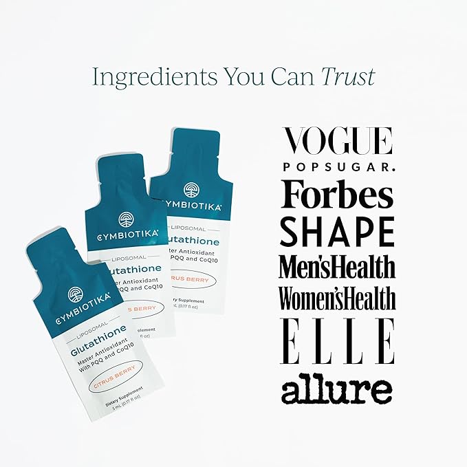 - Model Name : CYMBIOTIKA Glutathione with PQQ & CoQ10, USA MADE, Liposomal Delivery, Glutathione Supplement, for Energy, Gut Health & Immune Support, Natural Antioxidant for Men & Women, Citrus Berry, 25 Pack, 2pck CYMBIOTIKA Glutathione with PQQ & CoQ10, USA MADE, Liposomal Delivery, Glutathione Supplement, for Energy, Gut Health & Immune Support, Natural Antioxidant for Men &… See more