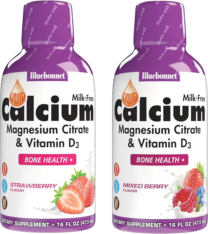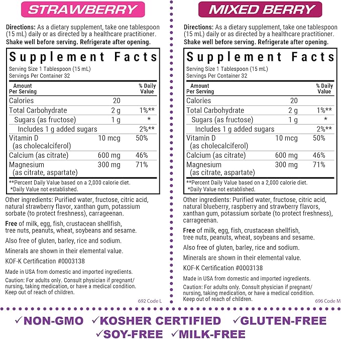Bluebonnet Nutrition Liquid Calcium Magnesium Citrate & Vitamin D3 Daily Bone Support Supplement - Strawberry & Mixed Berry Bundle
