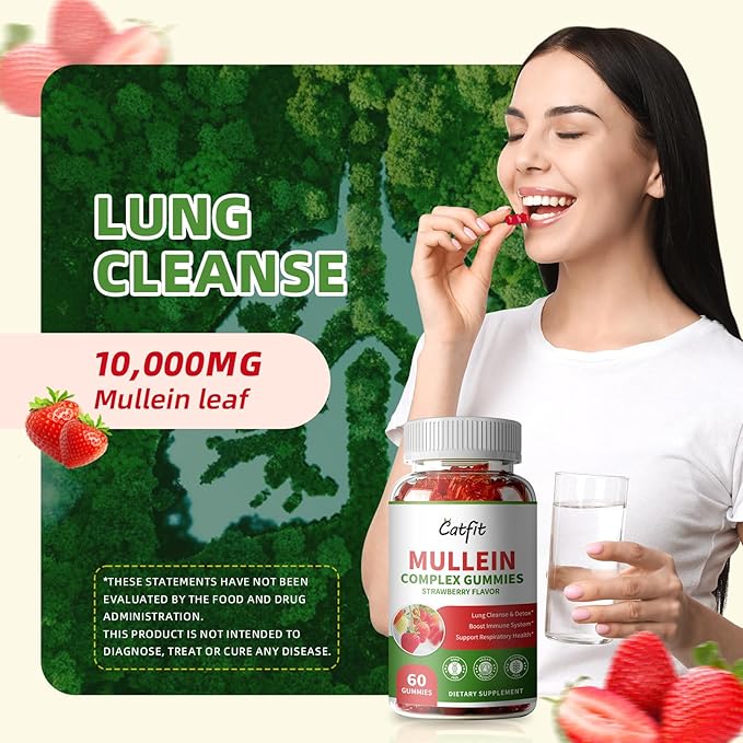 - Gentle Absorption, Effective Benefits – Designed to be easy on your digestive system, Catfit mullein gummies provide a convenient and pleasant way to enjoy the benefits of Mullein leaf extract for lungs. Supporting respiratory health, immunity, and overall wellness
