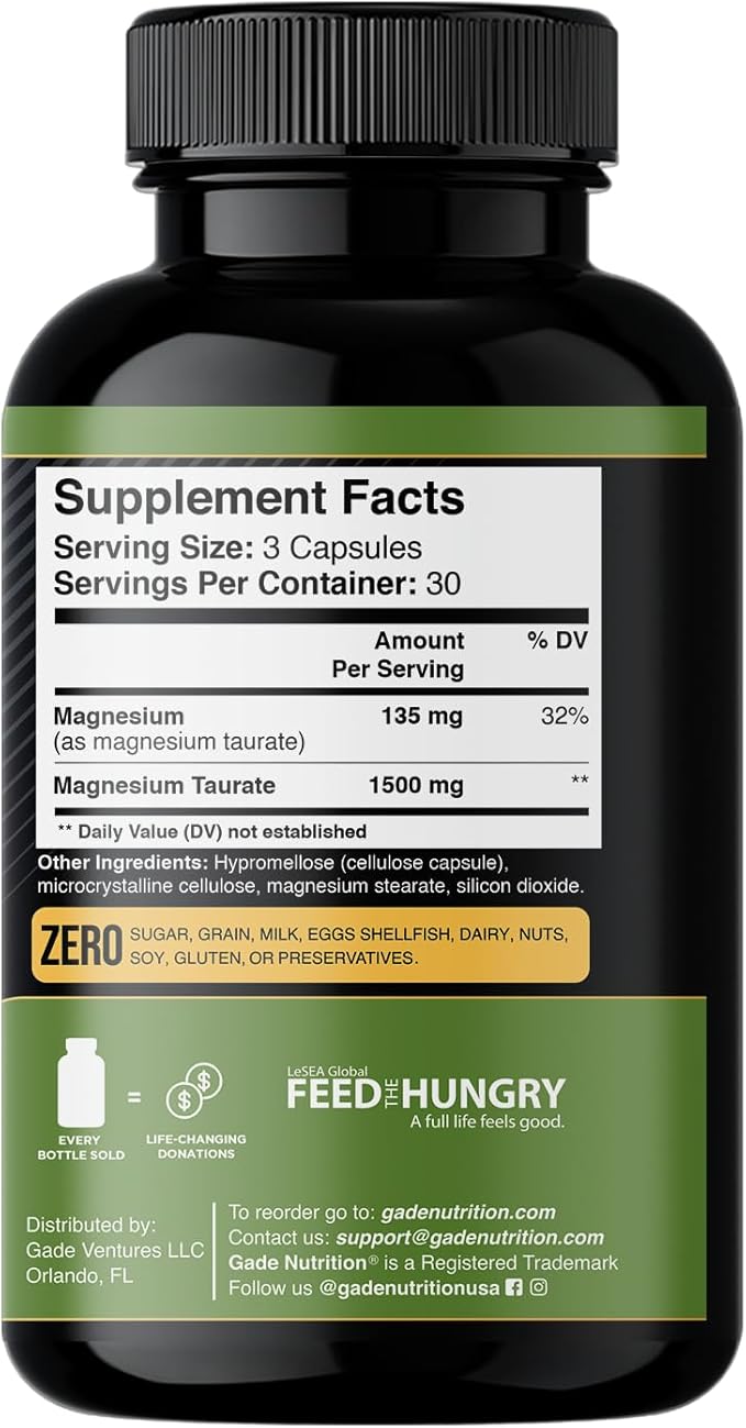 Gade Nutrition Pure Magnesium Taurate Calm & Sleep Supplement | Magnesium Supplement in Capsules Made in USA | Great Magnesium Complex