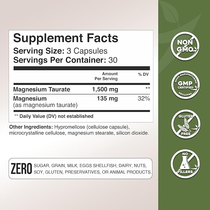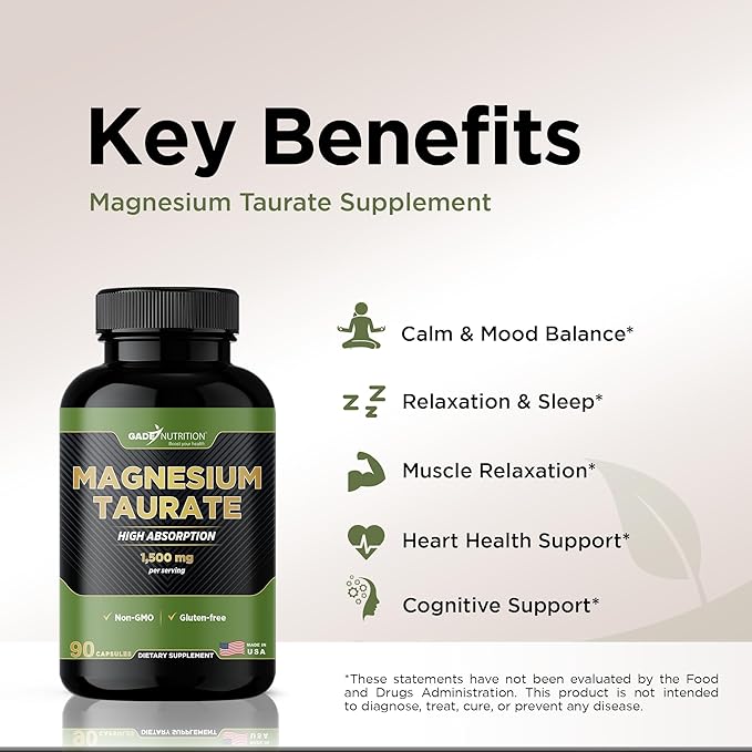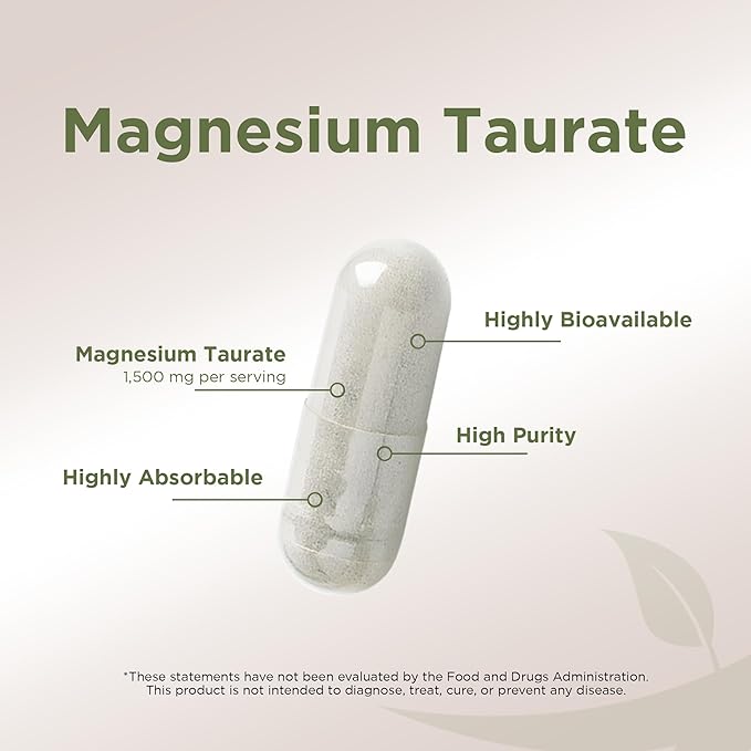 - PREMIUM SUPPORT FOR HEART, MIND & REST: This Magnesium Taurate supplement delivers 1,500 mg of magnesium taurate, a highly absorbable form known for its benefits in supporting cardiovascular function, cognitive health, and relaxation. Unlike other forms, magnesium taurate combines magnesium with taurine, an amino acid that plays a role in heart health and nervous system balance. This pure magnesium formula ensures optimal bioavailability and effectiveness for daily wellness.