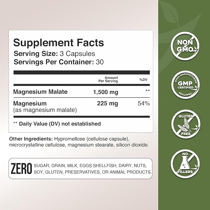 - PREMIUM QUALITY, HIGHLY BIOAVAILABLE MAGNESIUM: This magnesium malate supplement is carefully formulated for maximum absorption and effectiveness, ensuring your body receives the support it needs for energy, muscle recovery, and cognitive function. Unlike other forms, magnesium malate is known for its superior bioavailability and gentle digestion. Ideal for those looking for a high-quality magnesium complex, this supplement is a reliable choice for daily wellness and vitality.