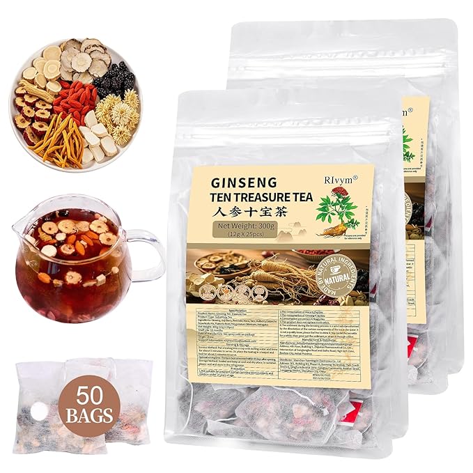 50Pcs Ginseng Ten Treasures Tea, Chinese Traditional Kidney Care Herbal Tea, Natural Kidney Cleanse Detox Tea for Women & Men, 10 Precious Ingredients Formula(50Bags, 600g)