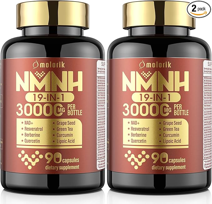 - 19-In-1 Advanced Formula - Our NAD+ resveratrol supplement features a powerful blend of 19 ingredients. This unique NMNH formula helps support healthy aging and cellular health with 100mg of NAD+ and 250mg of Quercetin. It supports brain health with antioxidants like resveratrol and lipoic acid, helping maintain cognitive well-being. The formula helps support immune health with vitamin D3, curcumin, and fisetin, while promoting overall heart health with berberine, vitamin K2, and pomegranate