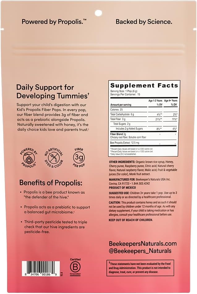 - DOCTOR FORMULATED, PREBIOTIC & FIBER LOLLIPOPS: Support your child’s digestion and regularity with our Kid’s Propolis Fiber Pops. Naturally sweetened with honey, it’s the daily choice kids love and parents trust.