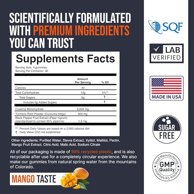- 5000 MG CREATINE PER SERVING – Delivers 5000 mg of creatine monohydrate in convenient chewable gummies with no powder mixing required.