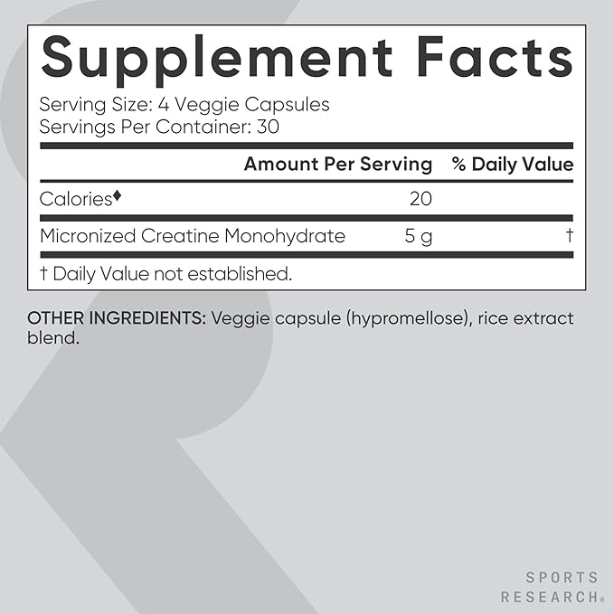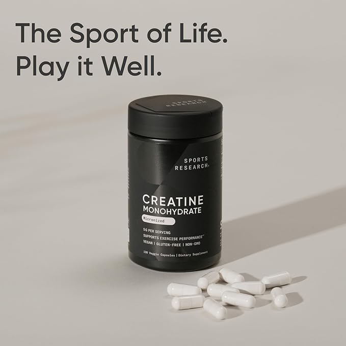 - OUR CREATINE, YOUR PERSONAL BEST: Optimize your workout routine with Sports Research Creatine Monohydrate capsules, which, when combined with regular exercise and taken daily, can help you stay sharp and build lean muscle in just four capsules. For faster results, a loading period may help.*