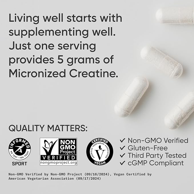 - ATHLETE-TRUSTED CREATINE: Sports Research Creatine Monohydrate Capsules are entirely Vegan, Non-GMO Project Verified and Informed Sport Tested for Banned Substances.