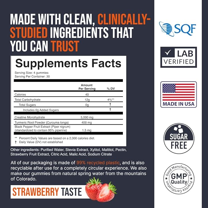 - HIGH-STRENGTH FORMULA – Delivers 5000 mg of creatine monohydrate per serving, packed into convenient, chewable gummies for daily use.