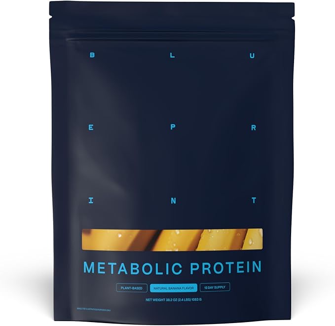 Blueprint by Bryan Johnson Vegan Protein Meal Replacement – Plant Based Hemp Protein with 27g Protein Per Serving – Low Calorie, Flavored Protein for Women & Men – Dairy Free – 15 Servings - Banana