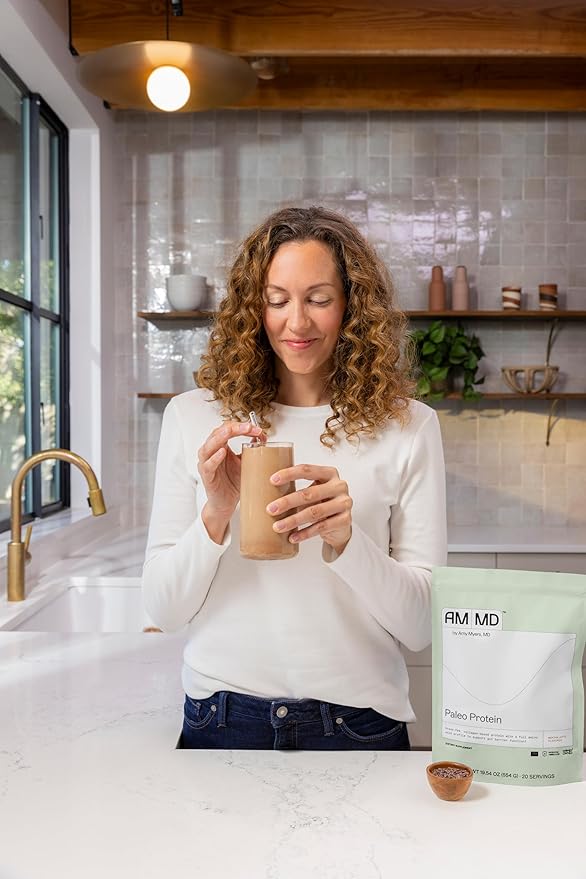 Amy Myers MD Paleo Protein Powder - Mocha Latte, 20 Servings - Collagen-Based Gut Function Support - Gluten-Free & Non-Dairy Protein Supplement