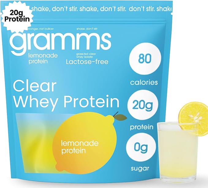 GRAMMS Clear Protein Powder, Lemonade | 20g Protein Grass-Fed Whey Isolate, Zero Sugar, Zero Lactose, Non-Bloating, Non-GMO, Protein for Women (18 Servings)