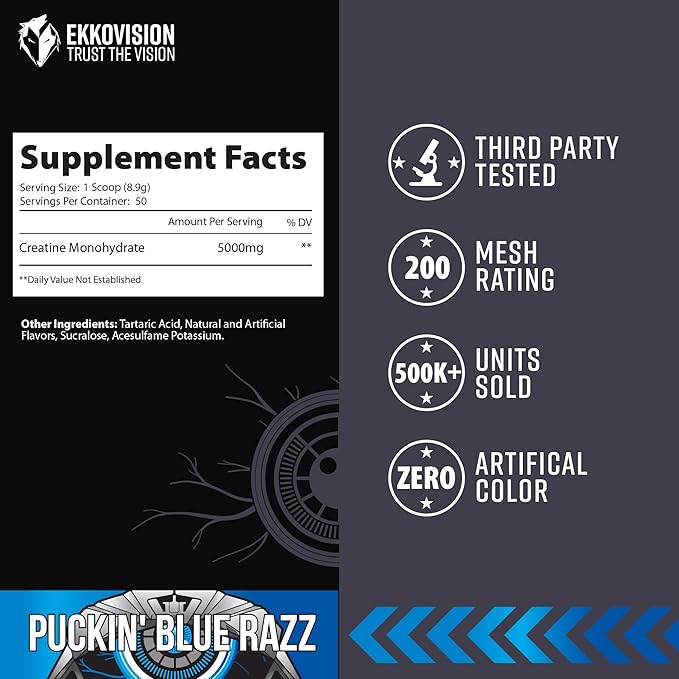 - TRY ALL EKKOVISION CREATINE FLAVORS FOR VARIETY: Explore the exciting range of Ekkovision Creatine flavors, from refreshing Pink Lemonade and Raspberry Watermelon to tropical Pina Colada and Island Surge. Satisfy your taste buds with options like Blueberry Mango, Green Apple, Strawberry Smash, Glacier Gummy, Cherry Limeade, and Puckin' Blue Razz. Prefer a more neutral option? Choose the unflavored variety for complete versatility.