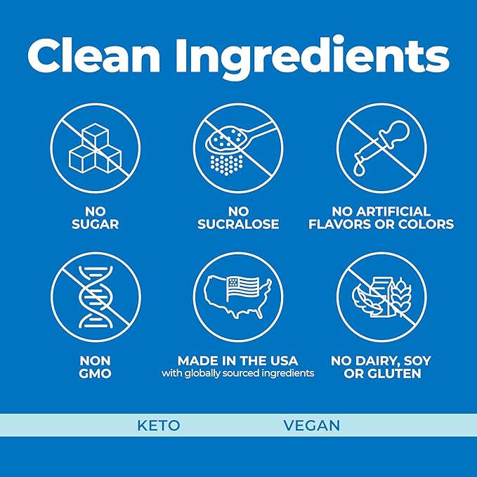 - CONVENIENT & COMPATIBLE: Includes 30 easy-to-use powder packets. Mix with 16-20 oz of water for a refreshing, energizing boost. Perfect for keto, low-carb, paleo, gluten-free and vegan lifestyles. Non-GMO, soy-free, and dairy-free.