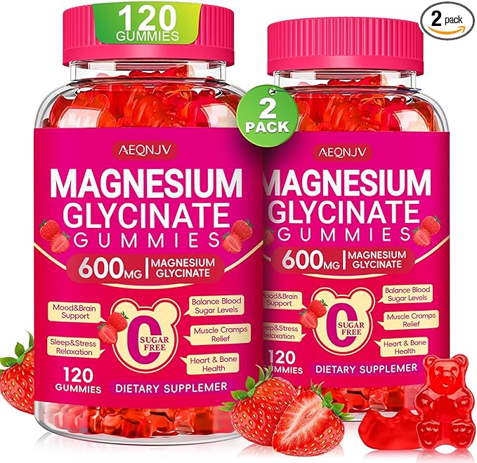 Magnesium Glycinate Gummies 600mg, Chewable Sugar Free Gummies with Magnesium Glycinate, Vitamin D, B6 and CoQ10 for Sleep, Relaxation, Brain and Muscle, 2 Pack