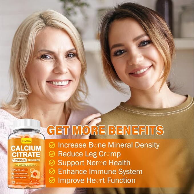 - FORMULATED FOR YOUR BODY STRENGTH: Each calcium gummy delivers 1200 mg of high-absorbing calcium citrate, essential for enhancing b0ne density and health while supporting teet h health and m uscle function. Moreover, enhanced with 5000 IU vitamin d3,our calcium citrate 1200 mg gummies help improve immune system function,regulate immune response and enhance immunity, providing comprehensive daily support for robust health. Just 2 gummies a day help you can maintain vitality for the whole day.