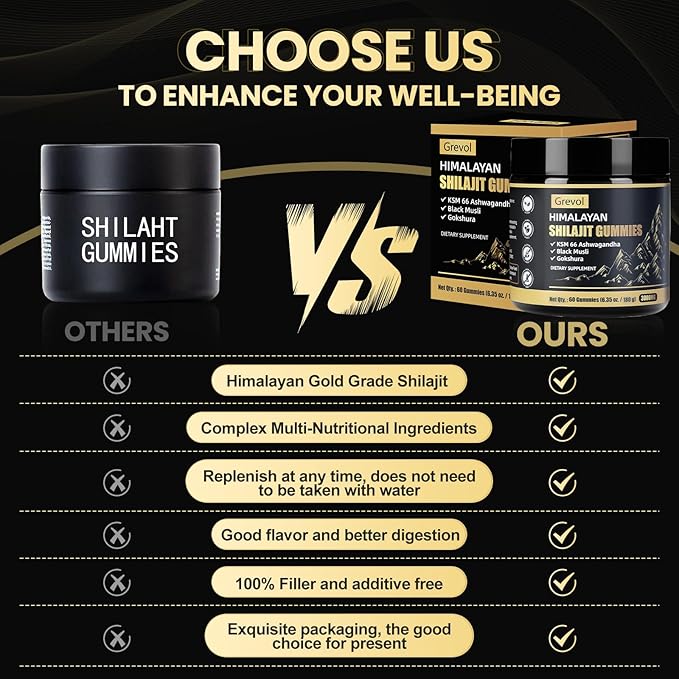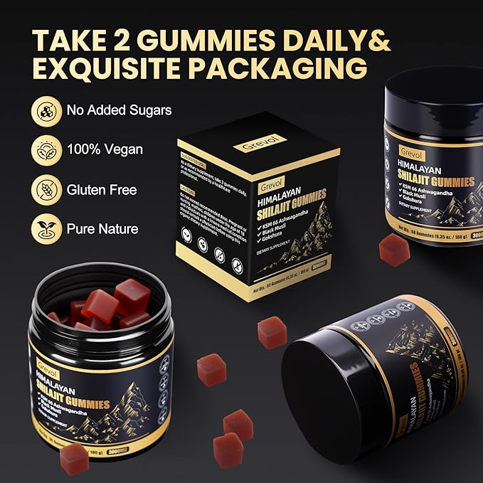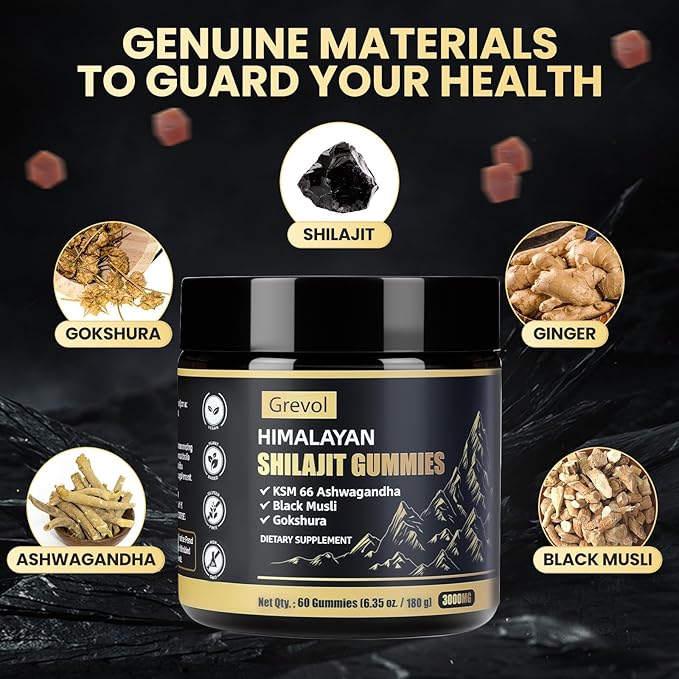 - Natural Ingredients : The Grevol Shilajit Gummies combines herbs like Himalayan Shilajit Resin, Ashwagandha, Ginger, Gokshura and Black Musli. Rich in Fulvic acid and 85+ types of trace minerals. Taking 2 gummies a day will satisfy your needs and contribute to your daily! Ideal for athletes, busy professionals, and anyone seeking keeping energy