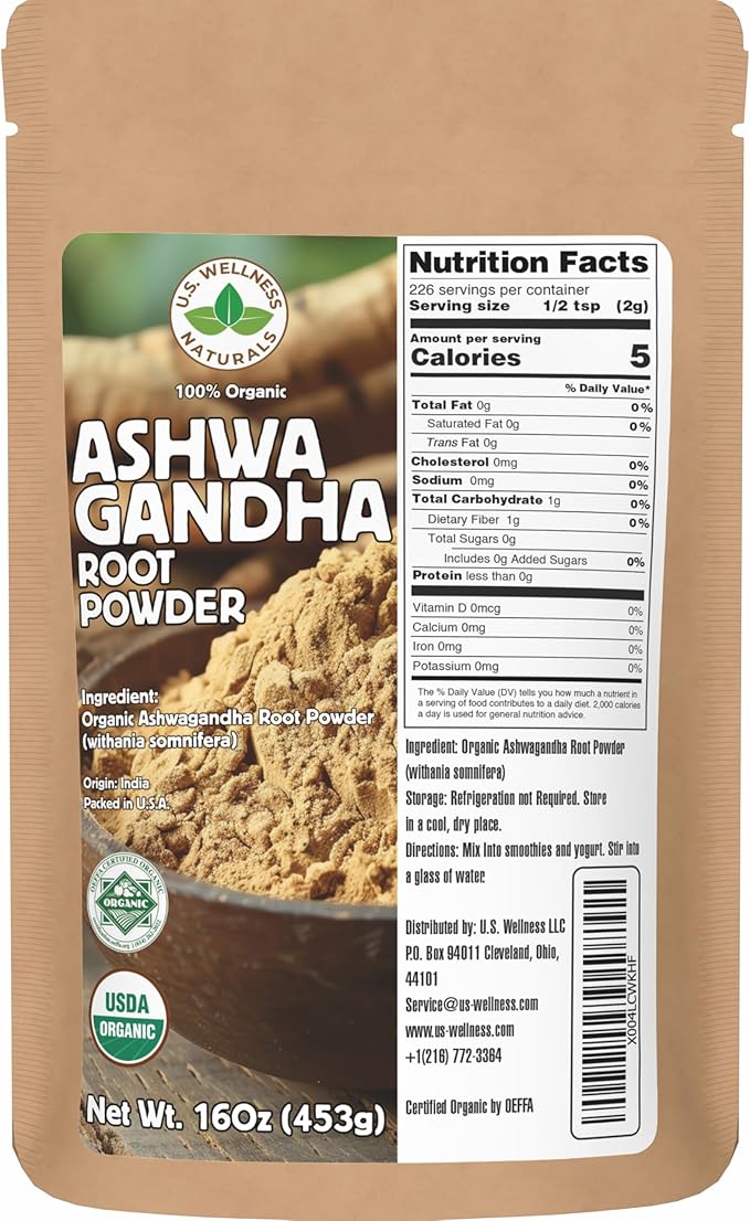 - CERTIFIED ORGANIC: 100% organic Ashwagandha root powder with no fillers, additives, or preservatives in a convenient 1-pound package