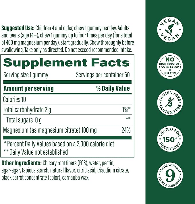 - Primary Supplement Type : Magnesium Citrate Gummies