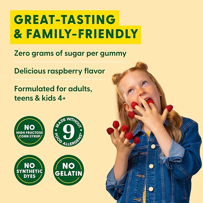 - GREAT-TASTING & FAMILY-FRIENDLY: These Magnesium gummies are formulated without gelatin, high fructose corn syrup, synthetic dyes, or sugary coating; zero grams of sugar per gummy; Color from a natural source; Crafted with delicious raspberry flavor the whole family will enjoy; Formulated for adults, teens, and kids four and older+
