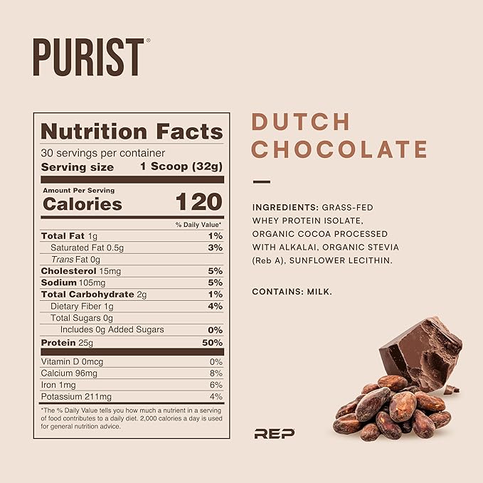 - Pure, Grass-Fed, Transparent Nutrition: Sourced from grass-fed cows and made without artificial ingredients, REP Purist Chocolate and Vanilla Isolate is a premium, transparent choice. Packed with protein, rich flavor, and real results. No GMOs, soy, hormones, or unnecessary fillers.