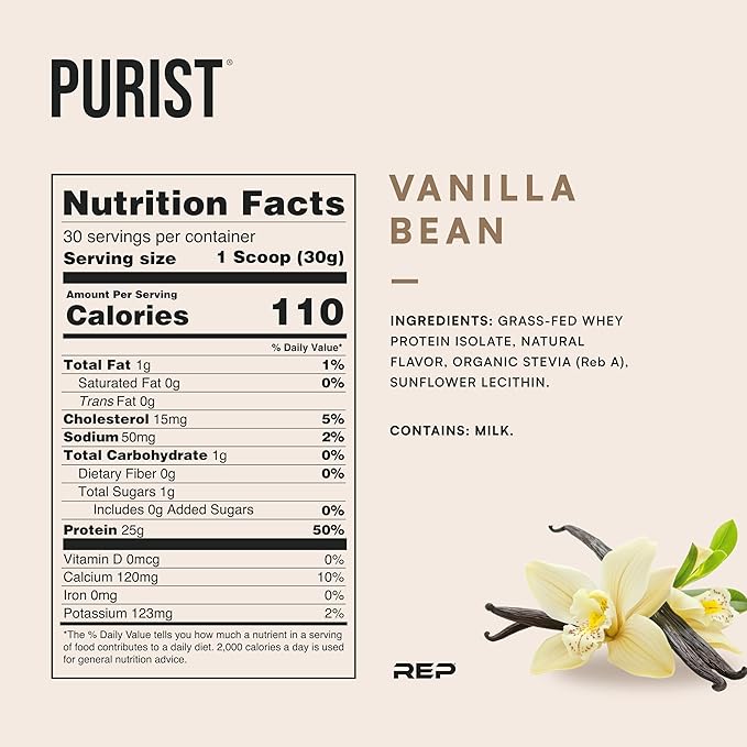 - Pure, Grass-Fed, Transparent Nutrition: Sourced from grass-fed cows and made without artificial ingredients, REP Purist Chocolate and Vanilla Isolate is a premium, transparent choice. Packed with protein, rich flavor, and real results. No GMOs, soy, hormones, or unnecessary fillers.