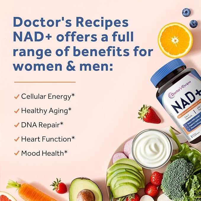 - 7-In-1 Next-Generation Longevity Complex*: Doctor's Recipes NAD features 7 longevity nutrients like NAD, nicotinamide riboside and resveratrol, backed by the latest research to support healthy aging and vitality - from cellular energy and repair to antioxidant, mood and heart health.*