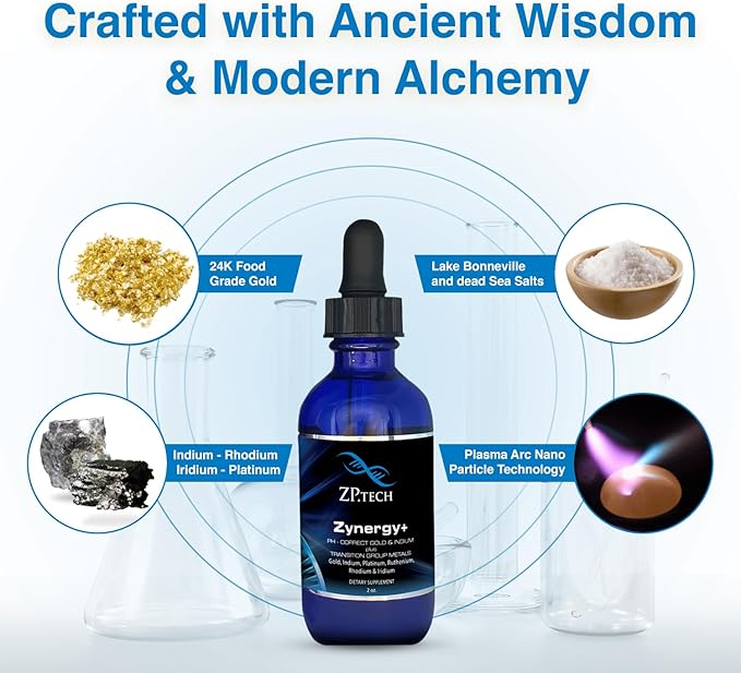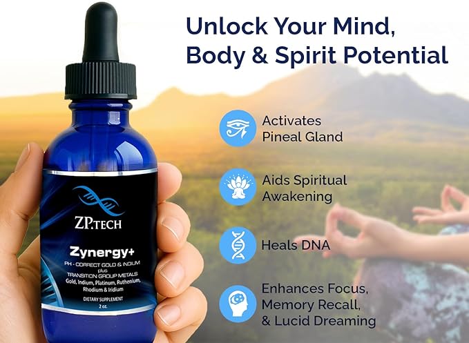 Zynergy Plus Colloidal Ormus Gold Liquid | All Natural, Pure Monoatomic 24k Food Grade Mineral Au & Indium | Ormus Gold Oil Supports Pineal Gland, Anti-Aging, Meditation, Yoga, Third Eye