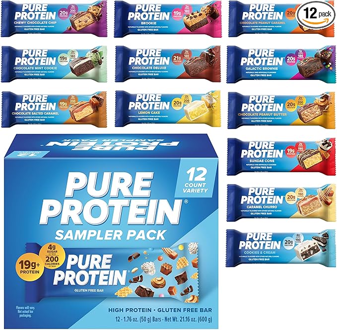 Pure Protein Variety Pack - 12 Count Box | 20g High Protein, Gluten-Free, On-the-Go Snack | Ideal Pre & Post-Workout Fuel | Low Sugar, Great Taste!