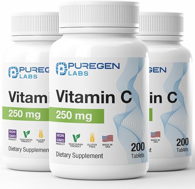 Puregen Labs Vitamin C 250 MG - Total 600 Tablets Supports a Healthy Immune System & Antioxidant Protection | Non-GMO | Gluten Free | Made in USA - 3 Pack